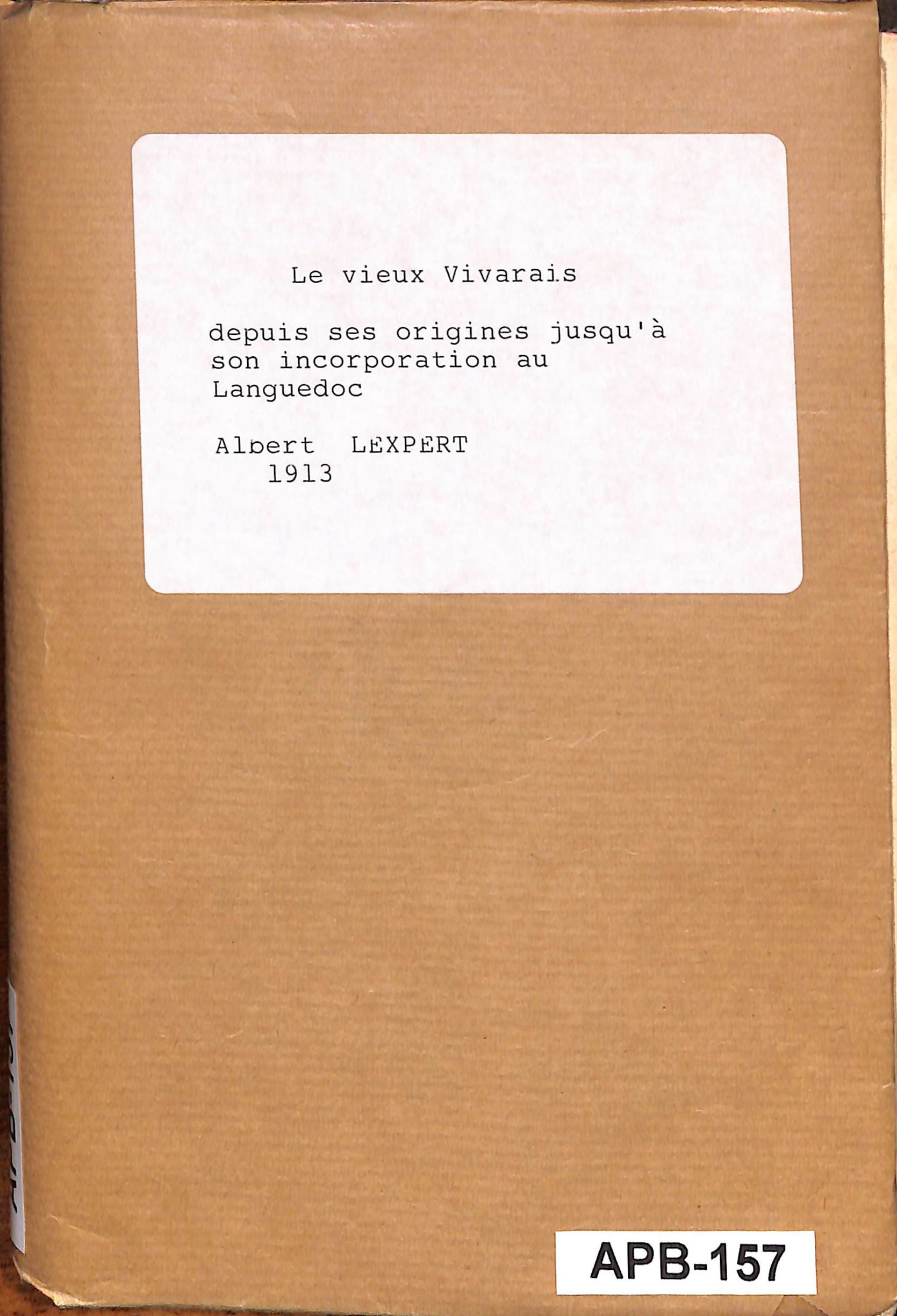 Le vieux Vivarais (depuis ses origines jusqu'à son intégration au Languedoc)