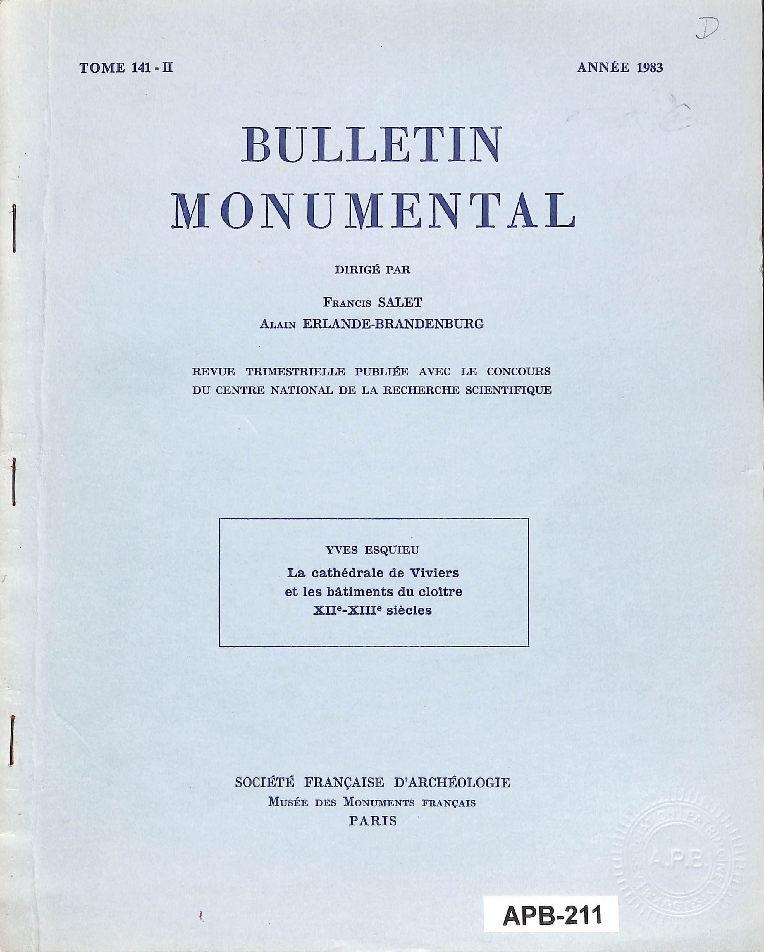 Bulletin monumental - La Cathédrale de Viviers et les bâtiments du cloître XIIe-XIIIe siècles