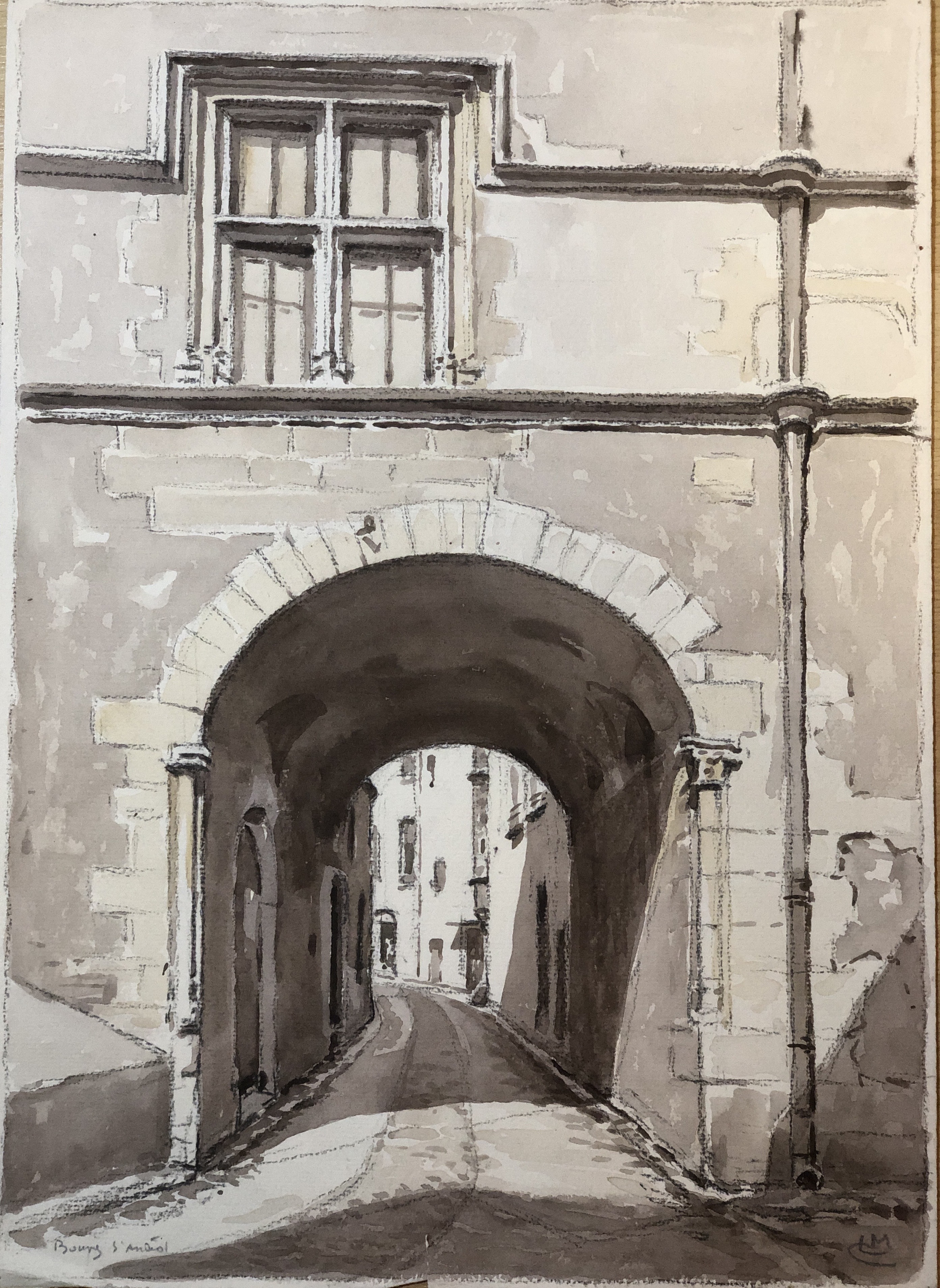 Vue 13 – Passage voûté sous l’hôtel Nicolay : lavis 40x28