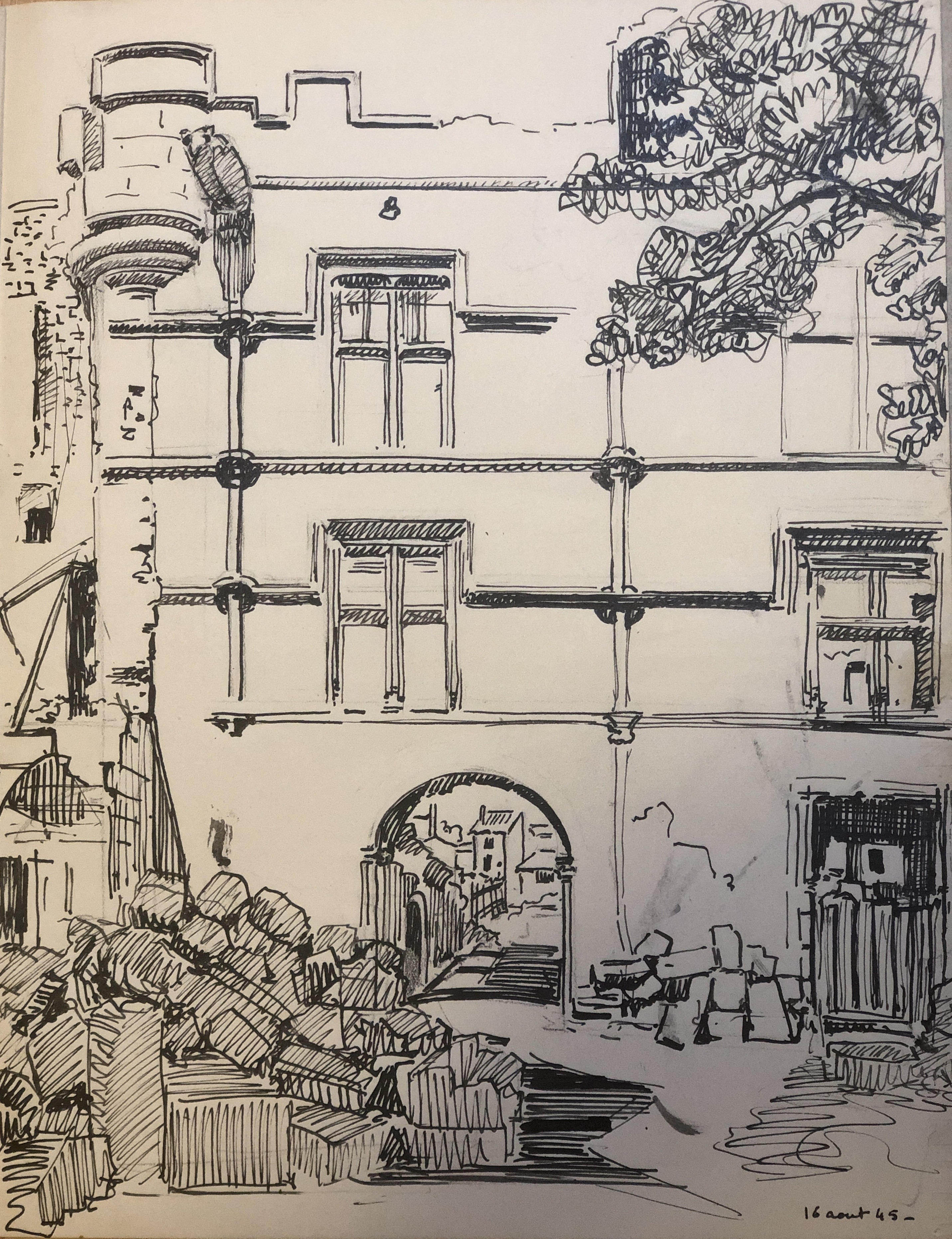Vue 14 – Passage voûté sous l’hôtel Nicolay en août 1945 :