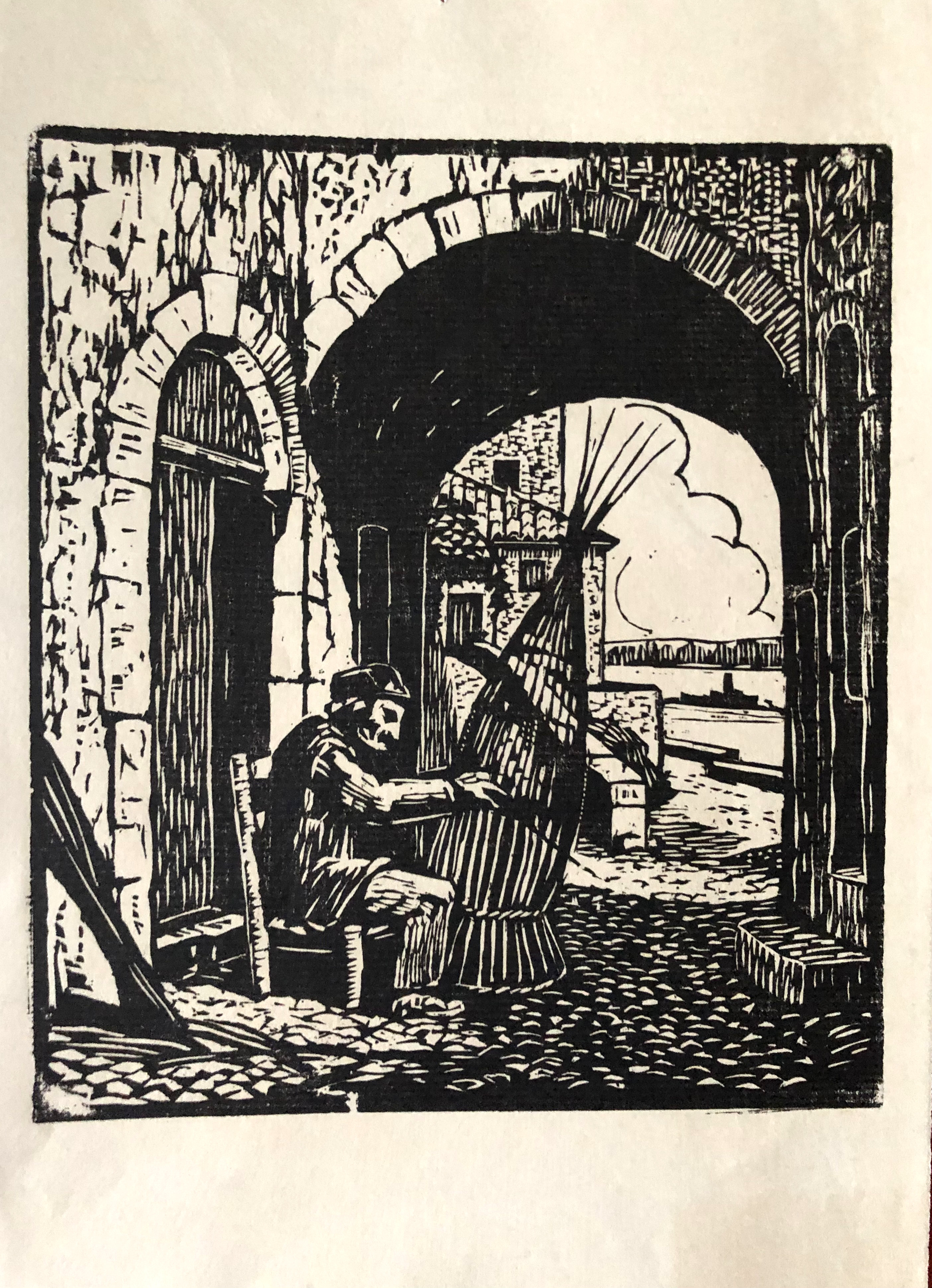 Vue 20 – Rue Poterne – le vieux pêcheur : bois gravé 18x15